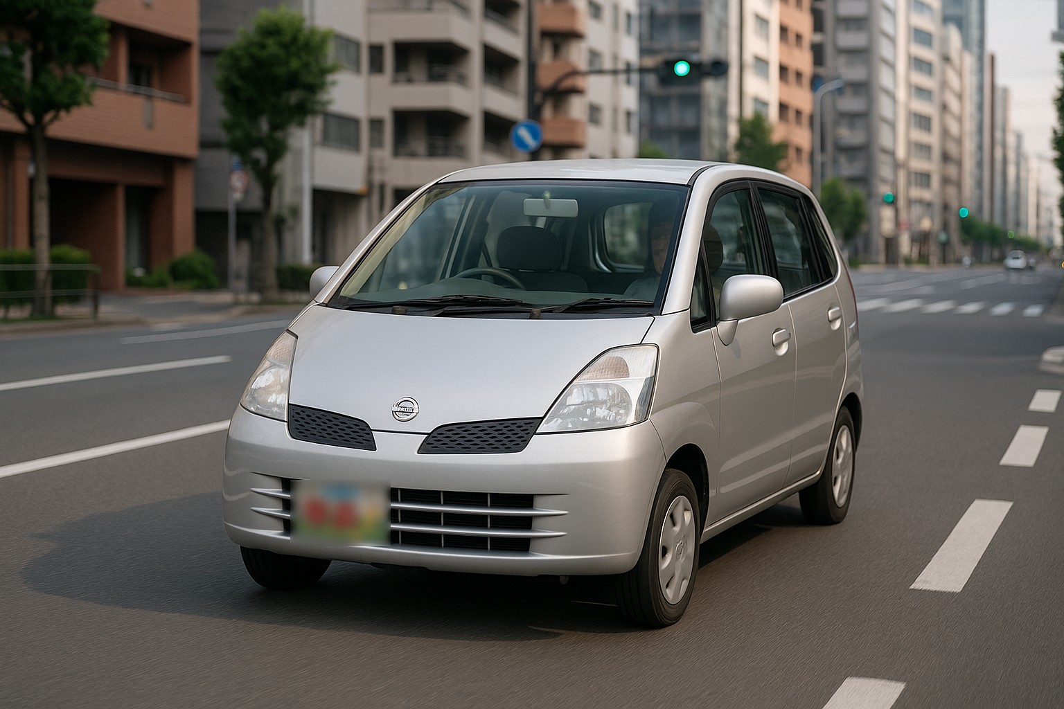 愛知県江南市で街中を走行する日産モコのシルバー軽自動車