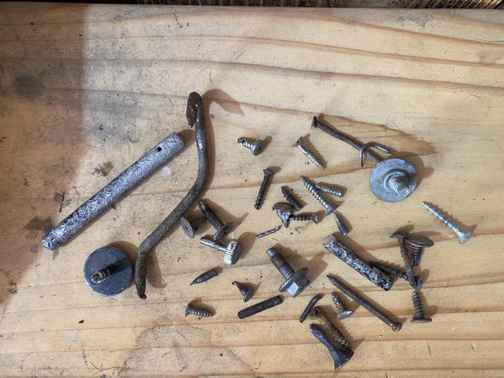 今回の写真は、直近3ヶ月の間に実際にタイヤをパンクさせた原因となった釘やビス類を集めたものです。