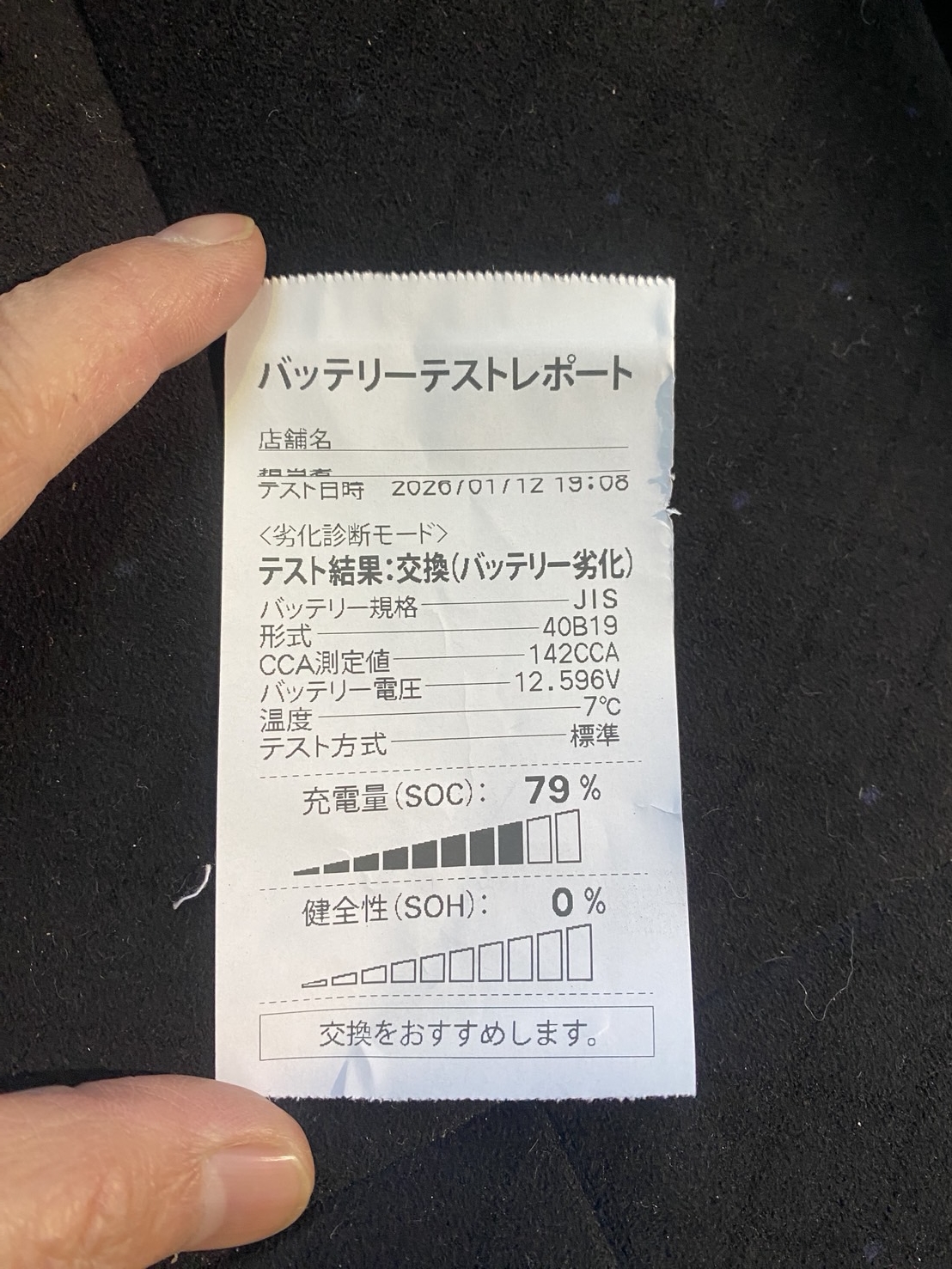 まずはバッテリーテスターを使用し、状態を確認しました。