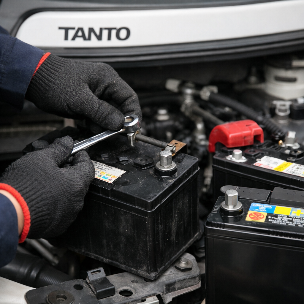 愛知県江南市でダイハツ タントのバッテリー交換なら金森石油へ