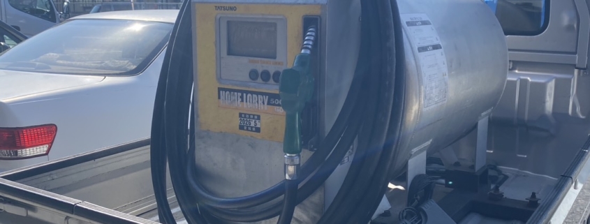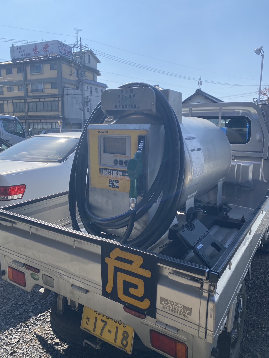 写真の通り、430Lクラスの軽油専用移動式給油タンクを搭載した軽トラックで現地へ向かいました。